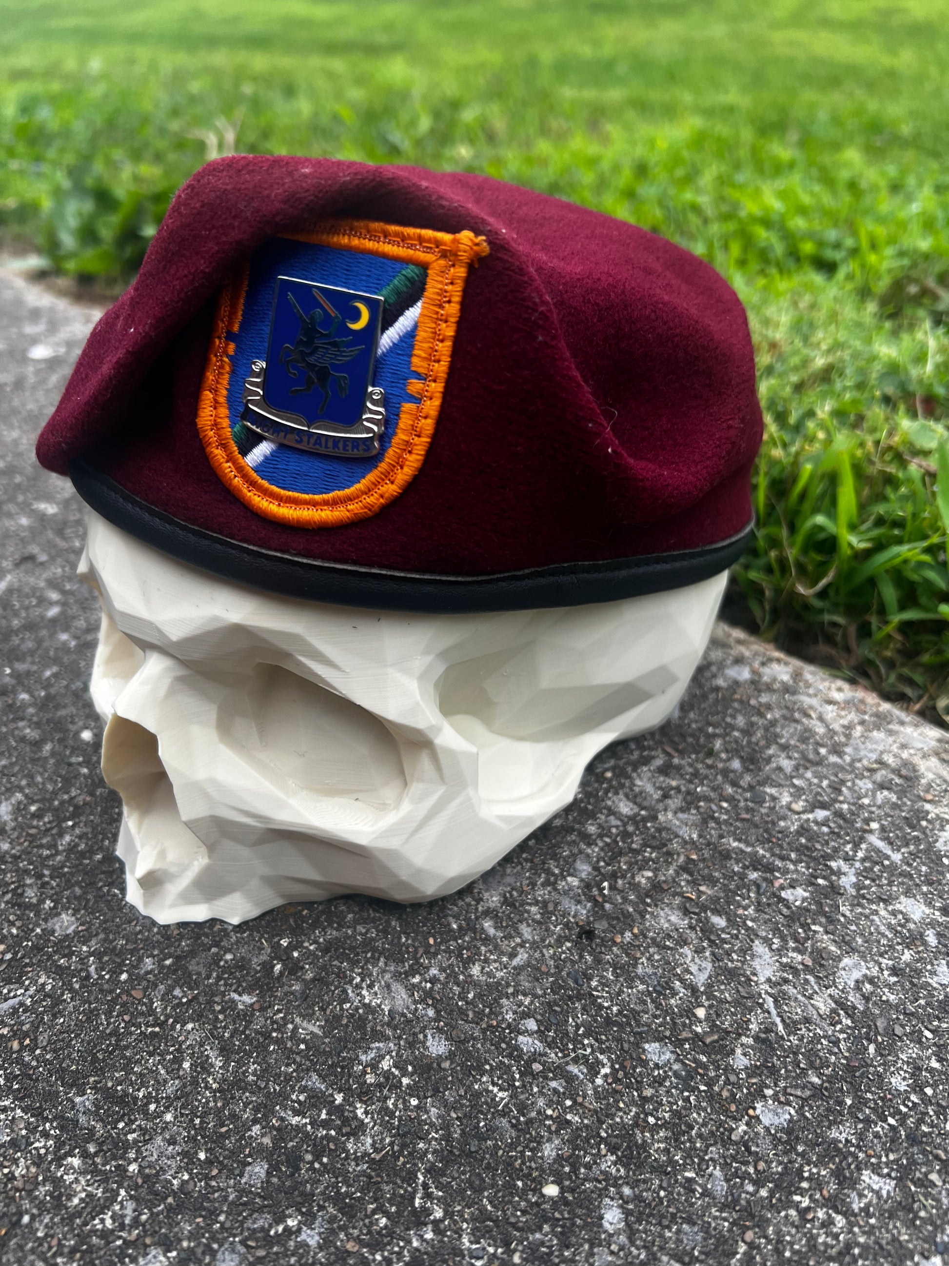 A bold and unique way to display your beret. This skull display is designed for service members past and present, from all branches and all nations.